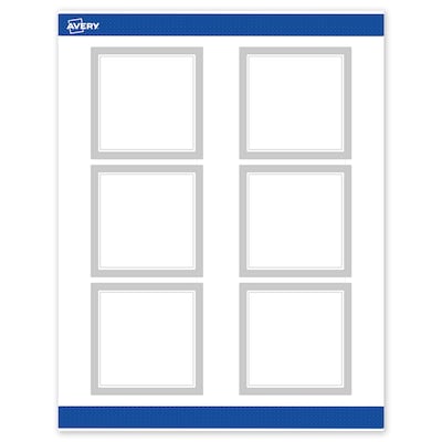 Add an elevated touch to branding and events with Avery(R) Square 3" x 3" Matte White Labels featuring the Silver Mirror Metallic design. Upgrade your business or event with these premium, printable labels that feature a pre-printed border with elegant metallic silver accents, delivering a look no standard printer can match. With a design already pre-printed, you can easily customize the blank space while using less ink—just personalize and print. For a cohesive look, pair these labels with other Avery(R) products in the same design collection. Featuring convenient Pop-Up Edge technology for faster peeling, these permanent customizable labels apply smoothly and stay securely in place. The smooth matte white finish delivers clean, versatile results that work beautifully across a range of projects. Built-in Sure Feed technology creates a more reliable feed through your printer to reduce misalignments and printer jams. Compatible with laser and inkjet printers, these labels make it easy to print candle labels, wedding stickers, thank you stickers, and more with professional results. Just use Avery(R) Design & Print, our easy-to-use design software, and search Avery Presta(R) Template S00-F3J to add your own logo, text, and artwork for a personal touch. Enjoy effortless customization with results that look truly professional.