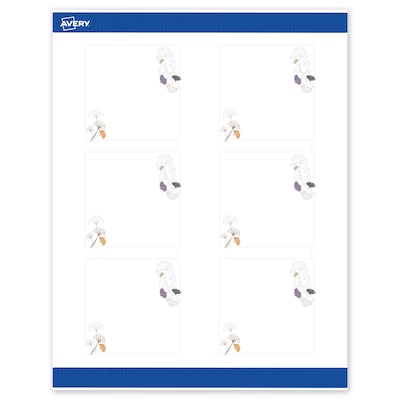 Add an elevated touch to branding and events with Avery(R) Square 3" x 3" Matte White Labels featuring the Silver Metallic with Gingko Leaves design. Upgrade your business or event with these premium, printable labels that feature a pre-printed border with elegant metallic silver accents, delivering a look no standard printer can match. With a design already pre-printed, you can easily customize the blank space while using less ink—just personalize and print. For a cohesive look, pair these labels with other Avery(R) products in the same design collection. Featuring convenient Pop-Up Edge technology for faster peeling, these permanent customizable labels apply smoothly and stay securely in place. The smooth matte white finish delivers clean, versatile results that work beautifully across a range of projects. Built-in Sure Feed technology creates a more reliable feed through your printer to reduce misalignments and printer jams. Compatible with laser and inkjet printers, these labels make it easy to print candle labels, wedding stickers, thank you stickers, and more with professional results. Just use Avery(R) Design & Print and search Avery Presta(R) Template S00-F4H to add your own logo, text, and artwork for a personal touch. Enjoy effortless customization with results that look truly professional.