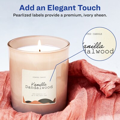 Elevate your product or project with Avery Pearlized Paper Labels that add elegance with a subtle shimmer.