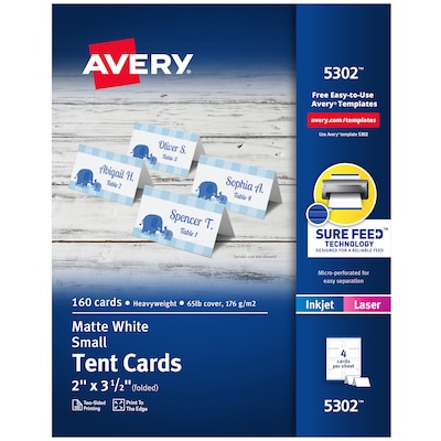 Avery Small Tent Cards, 2" x 3.5", Matte White, Inkjet/Laser, 160/Pack (05302)