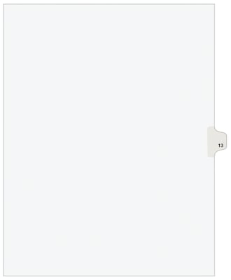 Avery Legal Pre-Printed Paper Dividers, Side Tab #13, White, Avery Style, Letter Size, 25/Pack (11923)