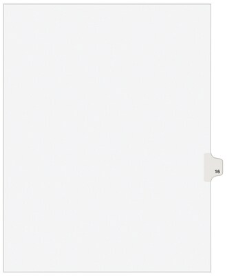 Avery Legal Pre-Printed Paper Dividers, Side Tab #16, White, Avery Style, Letter Size, 25/Pack (01016)