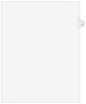 Avery Legal Pre-Printed Paper Dividers, Side Tab #5, White, Avery Style, Letter Size, 25/Pack (11915)