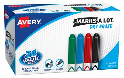 Avery Marks-A-Lot Pen-Style Dry Erase Markers, Bullet Tip, Assorted, 24/Pack (29860)