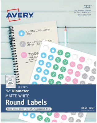 Avery Matte White Print-to-the-Edge Round Labels, 3/4" Diameter, Pack of 800 (4221)