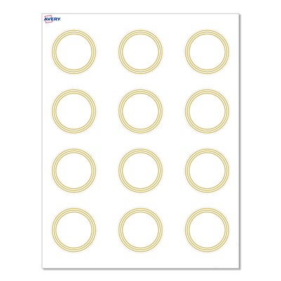 Pre-printed with beautiful designs, Avery Round 2" Diameter Matte White Cards with the Multi-Lined Gold Border Design help save ink and also elevate your branding and events. Pre-designed and printed with metallic gold ink with high-quality printers, these shiny patterns will definitely stand out and are not easily achieved with desktop printers. These pre-printed embellishments also help save your printer ink so that you only need to print your customizable information. Mix and match these cards with other Avery products from the same collection that have the same pre-printed design to create a cohesive look. Made with durable 80 lbs / 216 gsm cardstock with microperforated edges, these cards are great for creating double-sided thank you cards, round printable cards, round notes, and more. The versatile matte white material is a great solution for any project. Compatible with both laser and inkjet printers, these cards make it a breeze to personalize them with your own information with a desktop printer while still looking professional. Sure Feed technology reduces printer jams by creating a more reliable feed through your printer. Easily customize gold wedding cards, luxury holiday event cards, premium event cards, festive gold cards, and more with your own logos, text, and designs by searching for the Presta ID S00-D19 and using the templates and tools in Avery Design & Print on the Avery site. Whether you’re a business owner that wants to add more flair to products, an event planner looking to elevate an event, or a teacher looking to step up class projects, Avery cards make it easy to translate your designs into reality.