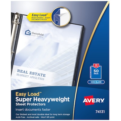 Avery Easy Load Super Heavyweight Non-Glare Sheet Protectors, 8-1/2" x 11", Clear, 50/Box (74131)