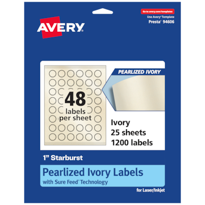 Order Avery Pearlized Ivory Burst Multipurpose Labels, 1", Ivory, 1200/Pack (94606) today at Quill.com and get fast shipping. Stack coupons to get free gifts & extra discounts!