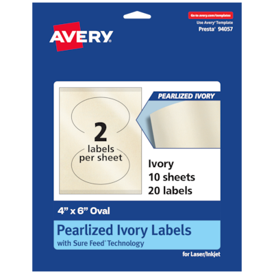 Avery Pearlized Ivory Oval Multipurpose Labels, 4" x 6", Ivory, 20/Pack (94057)