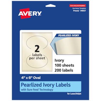 Avery Pearlized Ivory Oval Multipurpose Labels, 4" x 6", Ivory, 200/Box (94057)