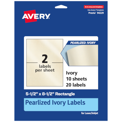 Avery Pearlized Ivory Rectangle Multipurpose Labels, 5.5" x 8.5", Ivory, 20/Pack (94229)