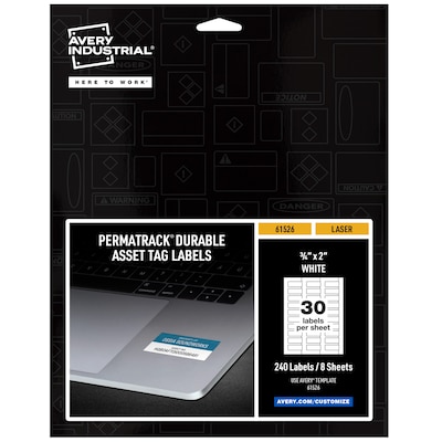 Avery PermaTrack Durable Laser Asset Tag Labels, 3/4" x 2", White, 240 Asset Tags/Pack (61526)