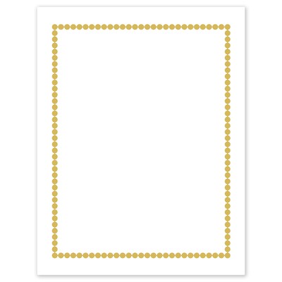 Pre-printed with beautiful designs, Avery Rectangle 8-1/2" x 11" Matte White Cardstock Sheets with the Gold Beads design help save ink and also elevate your branding and events. Pre-designed and printed with shiny matte gold ink with high-quality printers, these patterns will definitely stand out and are not easily achieved with desktop printers. Mix and match these cardstock sheets with other Avery cards, tags, and name badges from the same collection that have the same pre-printed design to create a cohesive look. Made with durable 80 lbs / 216 gsm cardstock with microperforated edges, these cards are great for creating certificates, price lists, flyers, mailers, invitation cards, schedules, menus, and more. The versatile matte white material is a great solution for any project. Compatible with both laser and inkjet printers, these cardstock sheets make it a breeze to personalize them with your own information with a desktop printer while still looking professional. Avery premium cardstock sheets are carefully constructed with beneficial features to provide the best results and allow your brand to stand out. Easily customize gold wedding cardstock sheets, luxury holiday event cardstock sheets, premium event cardstock sheets, festive gold cardstock sheets, and more with your own logos, text, and designs by searching for the Presta ID S00-DPF and using the templates and tools in Avery Design & Print on the Avery site. Whether you’re a business owner that wants to add more flair to products, an event planner looking to elevate an event, or a teacher looking to step up class projects, Avery cardstock sheets make it easy to translate your designs into reality.