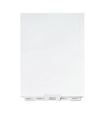 Guilty of disorderly files? It's time to crack down on chaos. This Premium Collated Legal Divider Set features bottom tabs A-Z and a Table of Contents tab, so you can organize index briefs, legal exhibits, mortgage documentation files and more. The 8-1/2" x 11" white paper stock features Rip Proof(TM) reinforced tabs that are preprinted on both sides using Helvetica bold type, so you can easily access the documents you need. Indexes can fit any binding system because the binding edge is unpunched. It's easy to bring order to your own files. Go ahead, throw the book at disorganization.