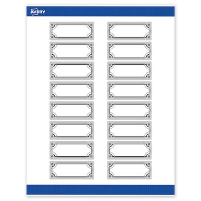 Add festive fun to branding and events with Avery(R) 1" x 2-5/8" Rectangle Holiday Labels featuring the Metallic Silver Border with Black Scalloped Frame design. Elevate your business or event with these premium, printable labels that feature a pre-printed border with elegant metallic accents, delivering a look no standard desktop printer can match. With a design already pre-printed, you can easily customize the blank space while using less ink—just personalize and print. For a cohesive look, pair these holiday labels with other Avery(R) products in the same design collection. Featuring convenient Pop-Up Edge technology for faster peeling, these permanent customizable labels apply smoothly and stay securely in place. The smooth matte white finish delivers clean, versatile results that work beautifully across a wide range of projects. Built-in Sure Feed(R) technology helps reduce misalignments and printer jams by creating a more reliable feed through your printer. Compatible with laser and inkjet printers, you can easily print holiday product labels, Christmas stickers, Christmas tag stickers, place card labels, Christmas labels, and more with professional results. Just use Avery(R) Design & Print and search Avery Presta(R) Template S00-FK6 to add your own logo, text, and artwork for a personal touch. Our easy-to-use design software lets you add your own personal touch while enjoying the consistency of the stunning, pre-printed design.