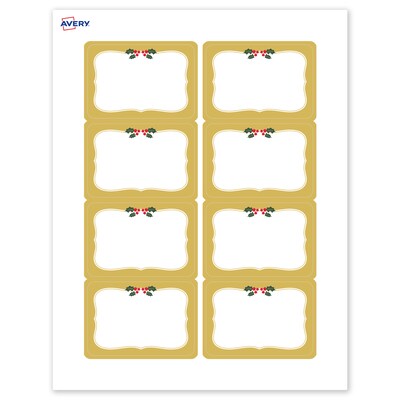 - Designed to coordinate: Pair with other Avery(R) products in the pre-printed Metallic Gold Border with Holly design featuring metallic accents that desktop printers can't replicate