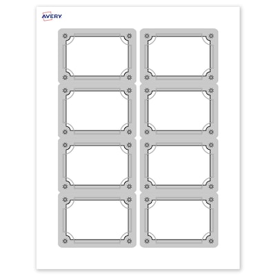 - Designed to coordinate: Pair with other Avery(R) products in the pre-printed Metallic Silver Border with Black Snowflakes design featuring metallic accents that desktop printers can't replicate