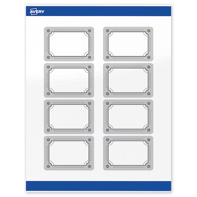 - Designed to coordinate: Pair with other Avery(R) products in the pre-printed Metallic Silver Border with Black Snowflakes design featuring metallic accents that desktop printers can't replicate