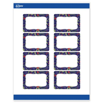 Add festive fun to branding and events with Avery(R) 2" x 3" Rectangle Holiday Labels featuring the Navy Blue Border with Silver Flourished Frame design. Elevate your business or event with these premium, printable labels that feature a pre-printed border with elegant metallic accents, delivering a look no standard desktop printer can match. With a design already pre-printed, you can easily customize the blank space while using less ink—just personalize and print. For a cohesive look, pair these holiday labels with other Avery(R) products in the same design collection. Featuring convenient Pop-Up Edge technology for faster peeling, these permanent customizable labels apply smoothly and stay securely in place. The smooth matte white finish delivers clean, versatile results that work beautifully across a wide range of projects. Built-in Sure Feed(R) technology helps reduce misalignments and printer jams by creating a more reliable feed through your printer. Compatible with laser and inkjet printers, you can easily print food & beverage labels, labels for wax melts, bath & beauty labels, and more with professional results. Just use Avery(R) Design & Print and search Avery Presta(R) Template S00-FHV to add your own logo, text, and artwork for a personal touch. Our easy-to-use design software lets you add your own personal touch while enjoying the consistency of the stunning, pre-printed design.