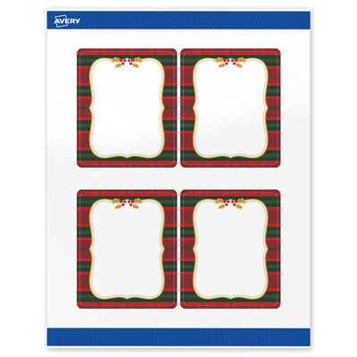 - Designed to coordinate: Pair with other Avery(R) products in the pre-printed Red & Green Plaid with Metallic Gold Frame design featuring metallic accents that desktop printers can't replicate