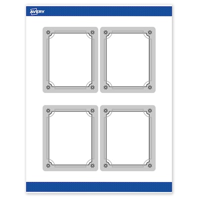 - Designed to coordinate: Pair with other Avery(R) products in the pre-printed Metallic Silver Border with Black Snowflakes design featuring metallic accents that desktop printers can't replicate