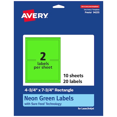 Order Avery Rectangle Multipurpose Labels, 4.75" x 7.75", Neon Green, 20/Pack (94255) today at Quill.com and get fast shipping. Stack coupons to get free gifts & extra discounts!