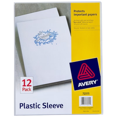 Manage paperwork organization with a 12 pack of these thumb-notched clear plastic sleeves. These letter-sized plastic sleeves are ideal to keep documents free from damage. The see-through front and convenient thumb notch of these Avery sleeves allow users to grasp papers quickly in order to remove them.