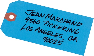 Unstrung shipping tags are strong in both construction and color. Their bright hue stands out to make it simple to locate shipping information and is light enough to make the information easily legible. A reinforced eyelet provides extra strength so the tag doesn't rip free of its fastening during shipment. Each tag comes unstrung to allow you to fasten it using your preferred means of attachment, whether string, wire, plastic or another method. Blue Tags are handwrite only.