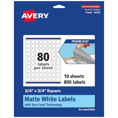 Avery TrueBlock Laser/Inkjet Multipurpose Labels, 0.75" x 0.75", White, 80 Labels/Sheet, 10 Sheets/Pack (94102-TWMP10)