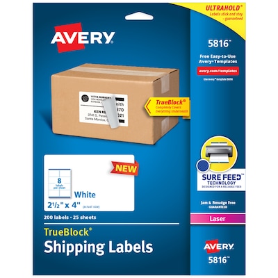Avery TrueBlock Laser Shipping Labels, 2-1/2" x 4", White, 200 Labels/Pack (5816)
