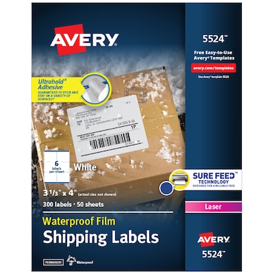 Avery Waterproof Laser Shipping Labels, 3-1/3" x 4", Matte White, 300 Labels/Box (5524)