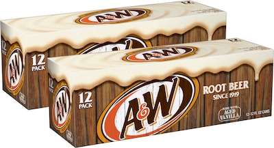 A&W Root Beer Soda, 12 oz., 12 Cans/Carton, 2 Cartons/Pack (10000852)