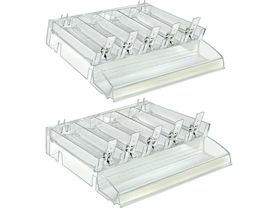 Azar 3.5" x 12" Pegboard 5-Compartment Cosmetic Tray with Tester Tray, Clear, 2/Pack (225840-TESTER-SHORT-2PK)
