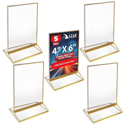 Azar 4" x 6" Acrylic Double-Sided Frames, Gold, 5/Pack (152792-GLD-5PK)