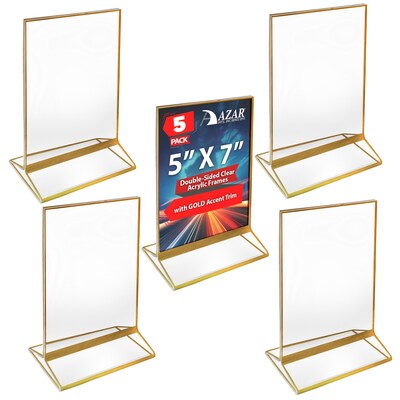 Azar 5" x 7" Acrylic Double-Sided Frames, Gold, 5/Pack (152799-GLD-5PK)