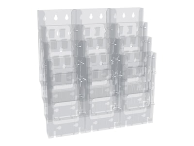 Exhibit advertisements or information with this wall mount display. The clear crystal styrene material looks professional and is sturdy enough for long-term use. The 12 6 x 9-inch pockets of this Azar wall mount display provide ample space to offer printed literature.