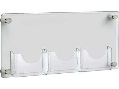 Add elegance to your professional environment with the Azar wall-mount clear acrylic brochure holder with silver satin aluminum caps and standoffs. Standoff hardware included.
