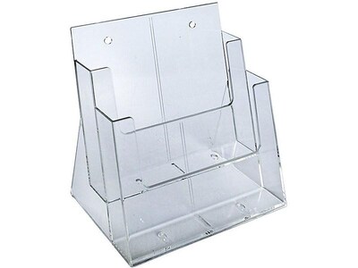 Keep tables and counters neat with this brochure holder. The two pockets make it easy to organize reading materials, while the clear construction ensures titles and subject information remain visible. This Azar brochure holder features a tiered design for convenient access to items stored inside each pocket.