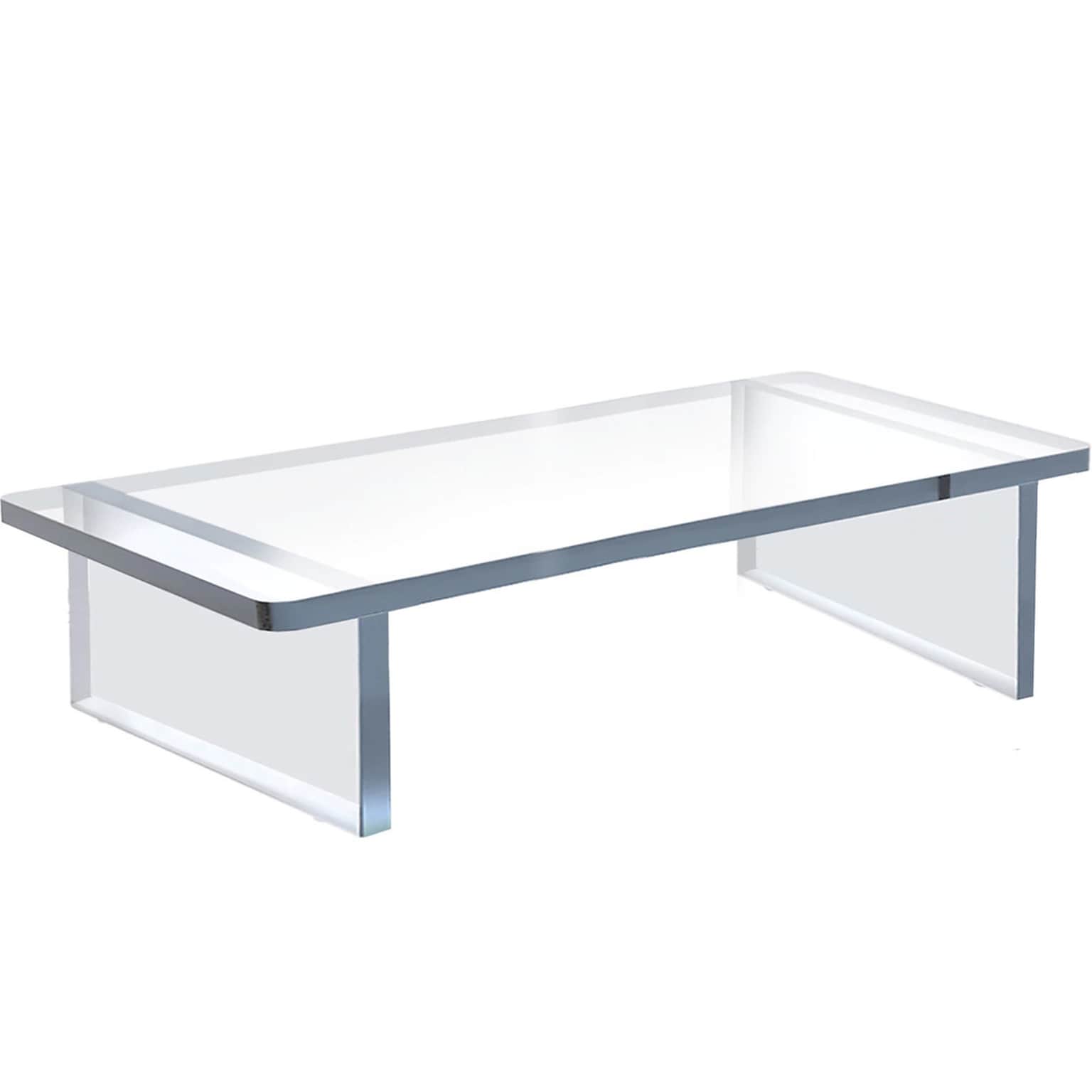 The Azar Deluxe clear acrylic riser is elegant and functional, as well as versatile. Merchandise and showcase your products or valuables at varying heights in your store or boutique to create visual appeal. The riser adds a touch of fancy to any item that is placed on it. Also perfect for catering weddings, corporate events, parties, and special occasions. Or use the riser in your office or home office to elevate your computer and create an ergonomic work setup while maximizing your desk space. Features bumpers to prevent sliding or scratching on surfaces.