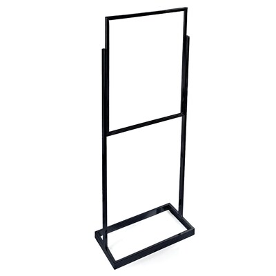 Azar Displays black metal advertising poster floor stand is simple, stylish and works perfectly in retail stores, banks, hospitals, medical facilities, tourist attractions, and community centers. This is a great merchandising solution for indoor use to grab your customer's attention or to advertise information to patients. Load your graphics from the top slot allowing for double sided visibility. With an attractive black chrome finish, this stand will surely stand out. This stand will hold poster graphics that are 22"W x 28"H. The overall height is 59" and the bottom base measures 23.75" wide x 15" deep. Packed as unassembled with an easy-to-assemble instruction sheet. These poster display stands are perfect for inside use in lobbies, offices, and storefronts.
