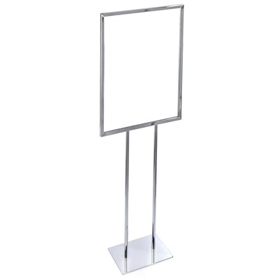 Azar Displays Single Frame Easel Display comes in a chrome color and measures 22 x 60 inch in size. It stands on a 14.25 x 10 inches base to offer a stable display.