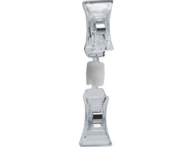 Add this Azar double clip-on sign holder to any display piece like a dump bin, bucket, bowl, shelf, or basket to brand your product or announce a promotion. Two identical clips are connected by a white swivel joint. It can be used in a vertical or horizontal orientation. Perfect for retail environments!
