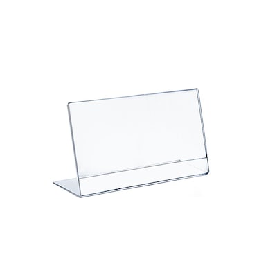 Azar Displays Horizontal Slanted, L Shape Sign Holder is made of acrylic to provide durability and strength. It is available in a size of 8 x 10 inches and comes in 10/pack.