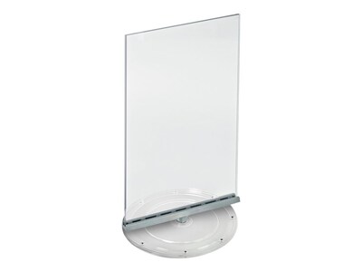 The Azar two-sided revolving acrylic sign holder can rotate while the base remains stationary. This clever feature allows displaying signage or marketing literature on both sides with one simple turn. This revolving frame is great for retail stores, office, home, trade show booths, and even restaurants. The eye-catching sign holder adds movement and style to any environment it is placed in.