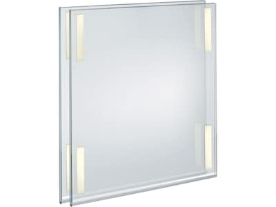 This Azar self-adhesive sign holder is made of high-quality acrylic with heavy-duty adhesive removable tape on the back. Peel and stick the acrylic wall frame on a clean flat surface. This frame with mounting tape is a great value and perfect to display your business hours, advertisements, branding messages, menus, gym schedules, artwork, photos, signs, and more. The adhesive foam tape allows for easy and secure mounting, but can also be removed when needed. The adhesive tape can only be used one time: once removed, the tape will no longer stick and will need to be replaced. The simple top-/side-loading design makes it easy to switch out your literature, documents, photos, or signs. This plastic sign holder is an optimal solution to display your information or message in offices, schools, hospitals, medical centers, hotels, restaurants, airports, elevators, lobbies, cafes, and so much more. Fits standard 17" x 22" graphics.