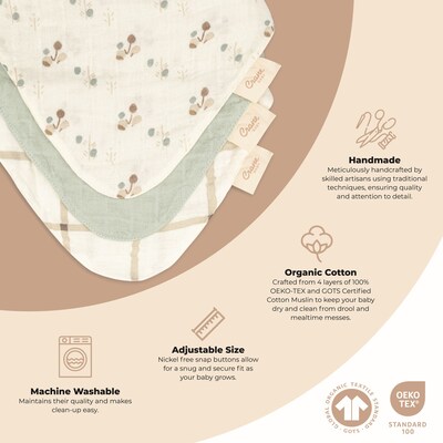 Baby Crane Caspian Muslin Bib, 3/Set (BC-130BS)