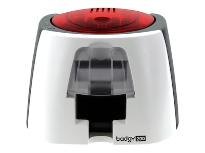 Design beautiful custom cards with this card printer. The Badge Studio+ software included with this printer makes it possible to start from scratch or work from a vast library of card templates. This card printer comes with a color ribbon cassette and produces up to 95 full-color cards in an hour. Use this Evolis Badgy200 color printer to craft vibrant ID cards for the entire office staff or for a customer loyalty program.
