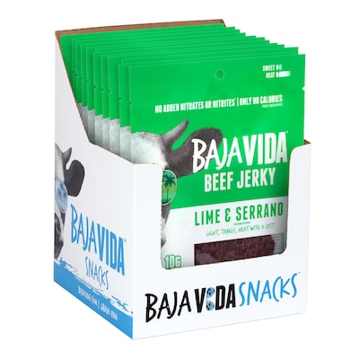 Baja Vida Beef Jerky Lime and Serrano Pepper Snack Pack, 1.0 oz, 12 ct