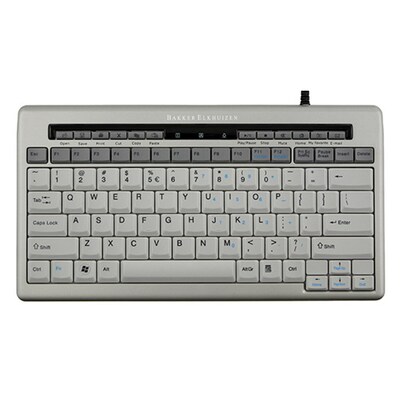 The Bakker Elkhuizen S-board 840 BNES840DUS USB compact keyboard in white, comes with multimedia keys, 2 USB ports, extra wide space-bar and user-friendly positioned arrow keys. The compact keyboard provides greater comfort and reduces the reaching distance to the mouse. It has dark letters on a light background that helps you type at night.