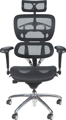 Combining an impressive array of ergonomic features with a modern and elegant design, the Balt Butterfly ergonomic executive office chair gives you total control over your seating experience at an unbeatable price point. It is engineered to support the body in all-day comfort and provide an ergonomic fit for a wide spectrum of body types. The Balt executive office chair's stylish and breathable split-panel mesh back includes angle adjustment, tilt-lock in three positions and tilt tension control. It i s contoured to provide optimum and natural lumbar support. The chair can easily adjust the breathable mesh seat depth with the seat glide control. The curved headrest pivots to give correct neck support whether upright or reclining. This ergonomic office e chair's arm rests pivot and are height adjustable (3") to work with a variety of work spaces, positions, and activities. The back also features a convenient built-in coat or jacket hanger. The Balt office chair includes a durable 5-star base with dual -wheel casters for smooth mobility. The optional tablet arm accessory adds more functionality. The push button adjustment of arm joints locks in your desired positioning.